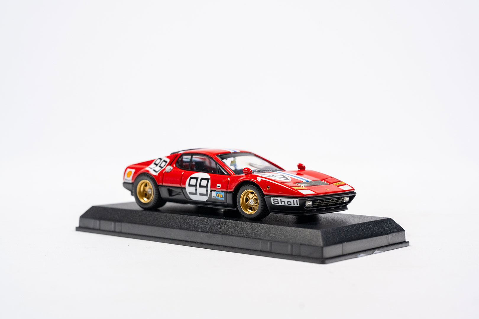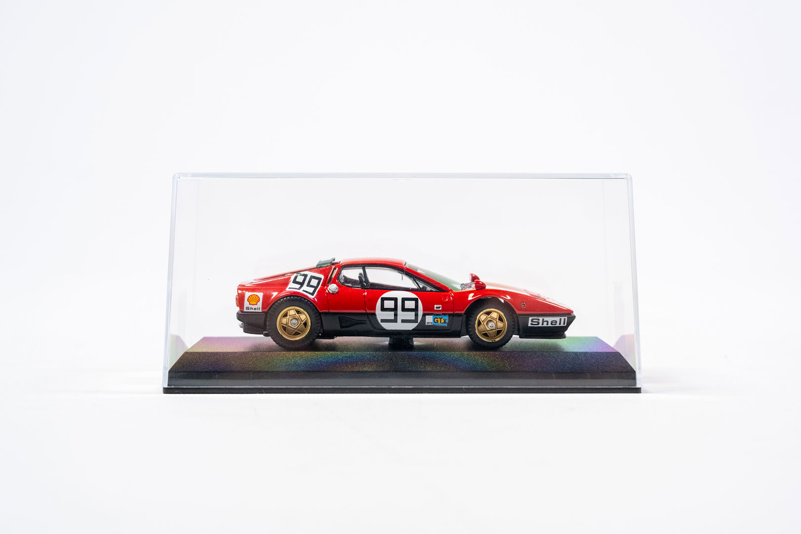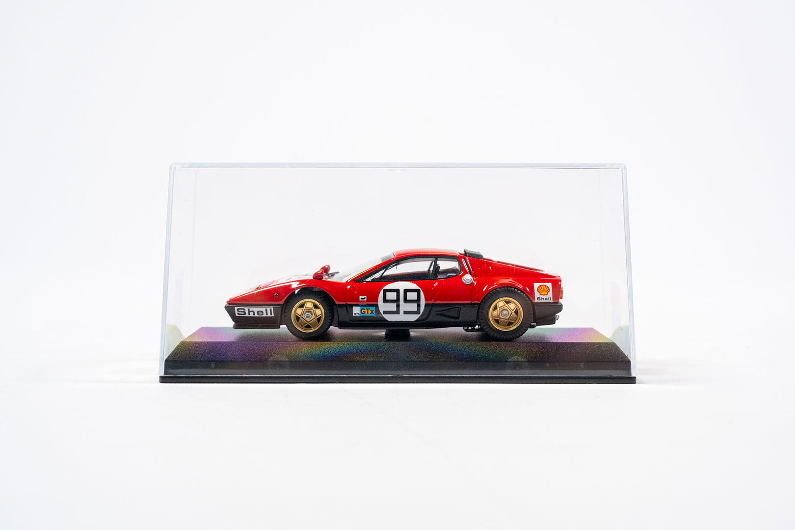 This 1:43 scale model Ferrari BB512 Race Car features Shell sponsorships and wears the No.99 logo. It comes with a stand and case and can be paired with the iconic Exoto 43 Race Car Transporter Model.