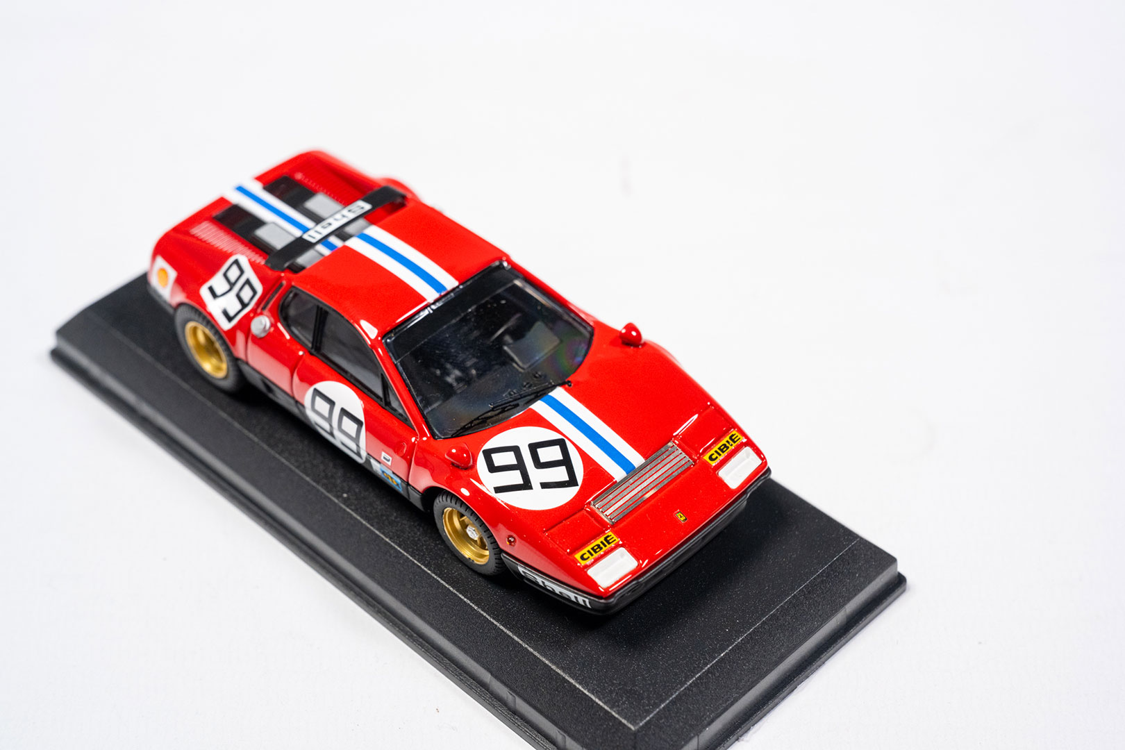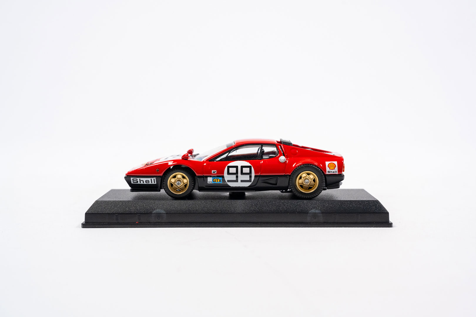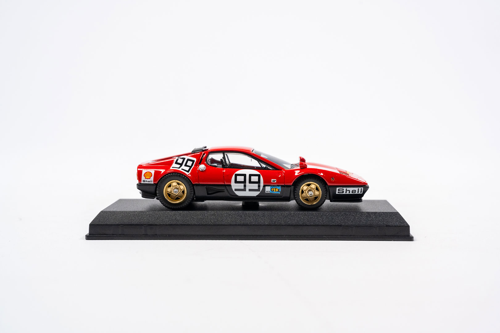 This 1:43 scale model Ferrari BB512 Race Car features Shell sponsorships and wears the No.99 logo. It comes with a stand and case and can be paired with the iconic Exoto 43 Race Car Transporter Model.