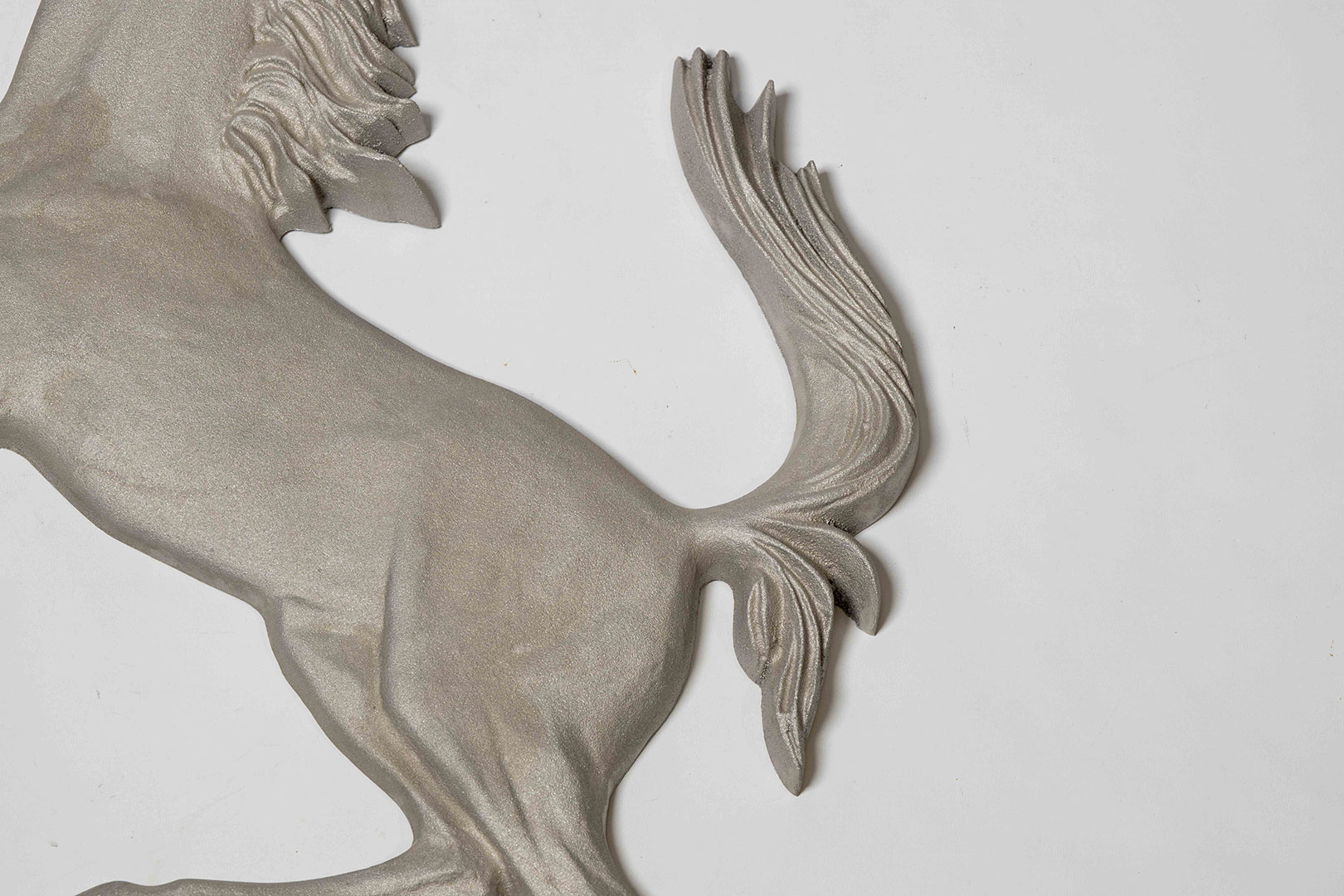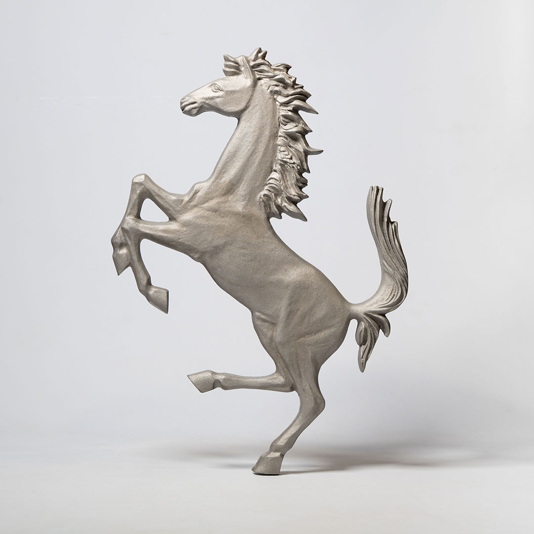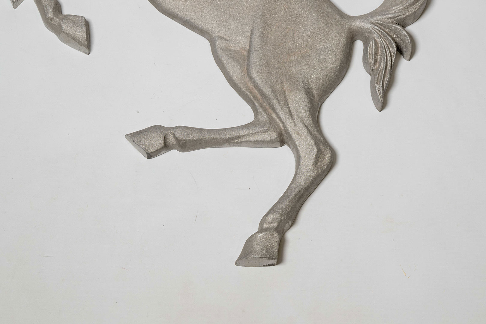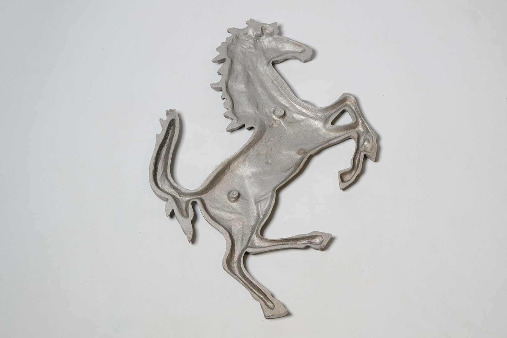 Ferrari Cavallino Rampante in silver, presented in excellent condition, measuring approx. 92cm x 55cm. Perfect for any office, showroom or garage.
