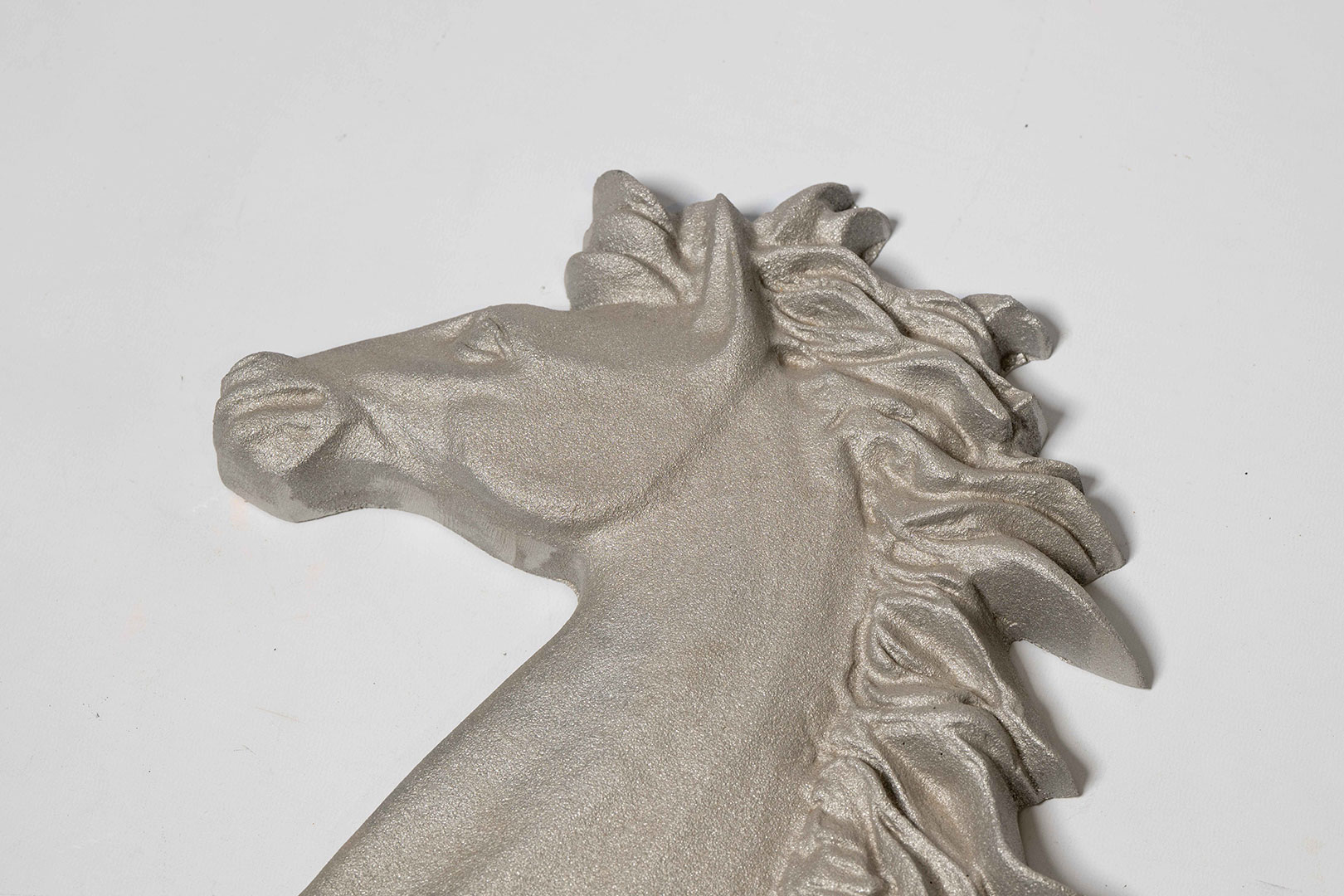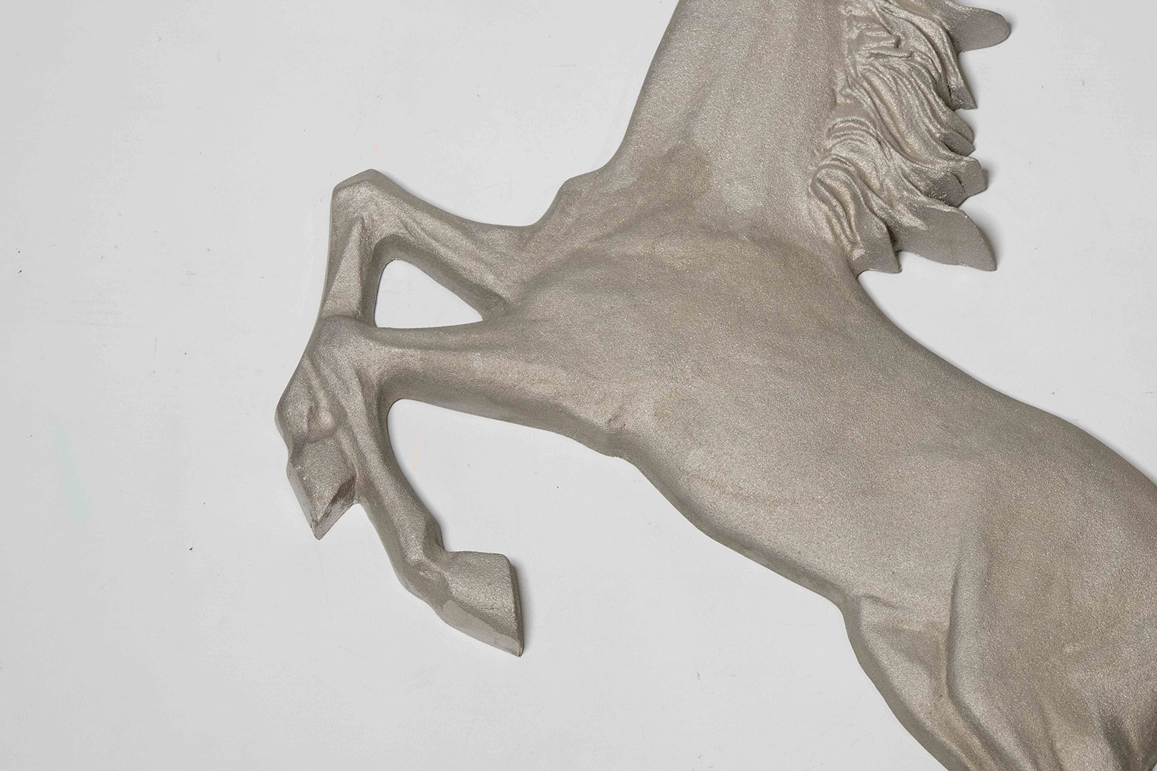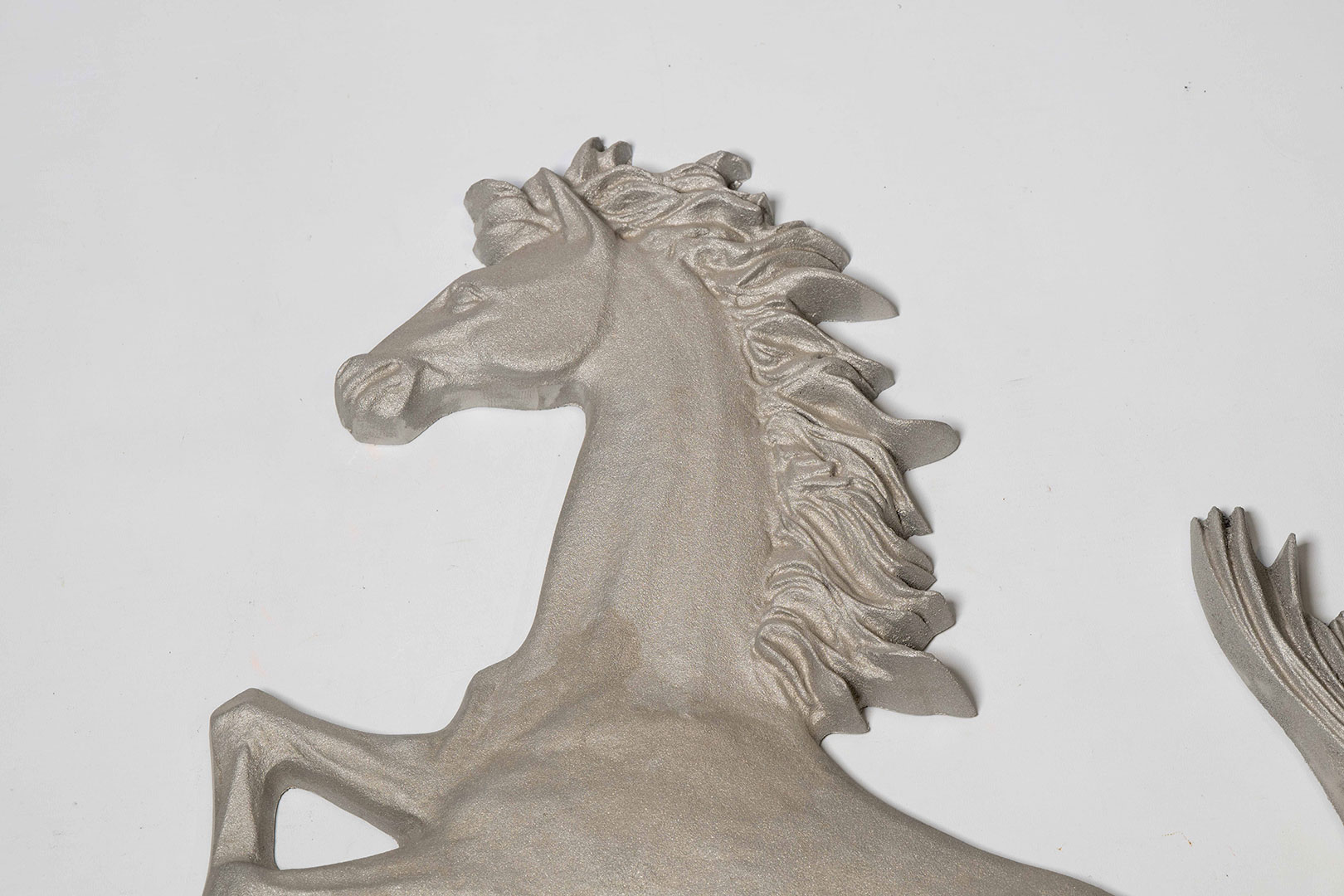 Ferrari Cavallino Rampante in silver, presented in excellent condition, measuring approx. 92cm x 55cm. Perfect for any office, showroom or garage.