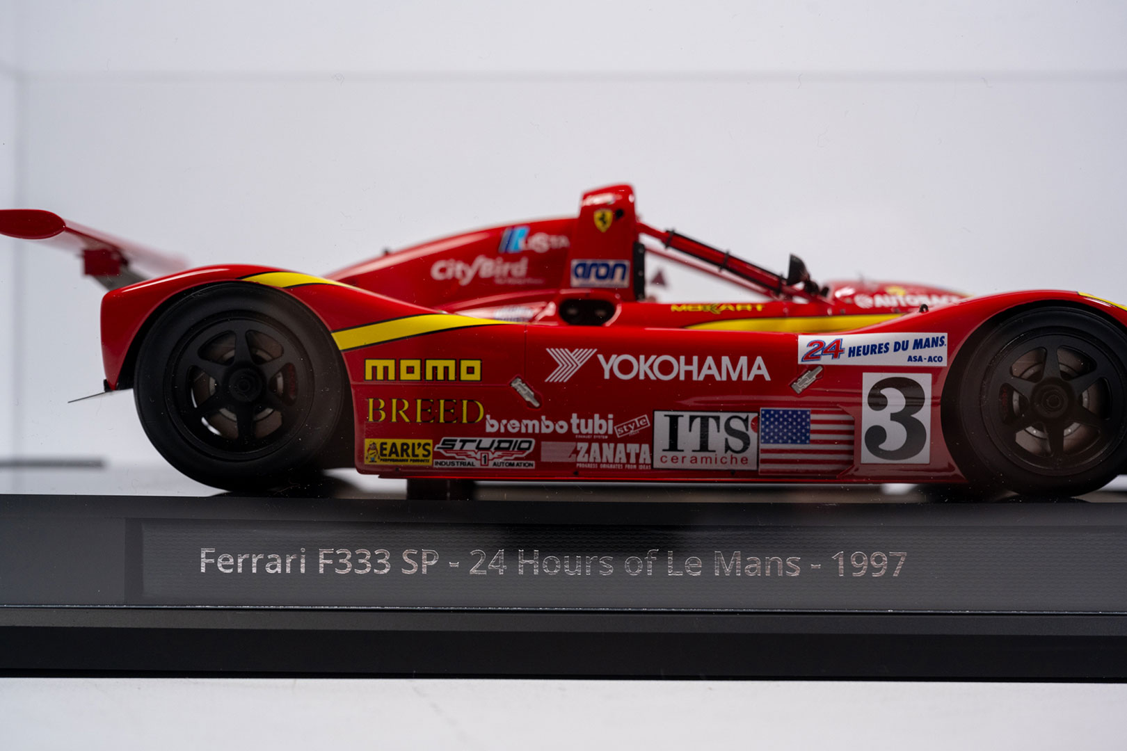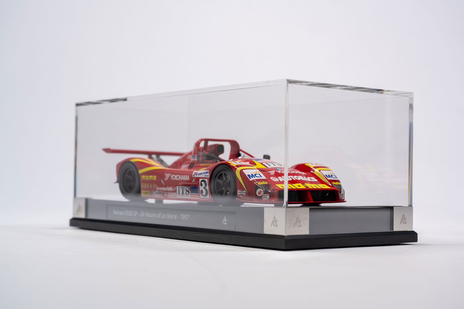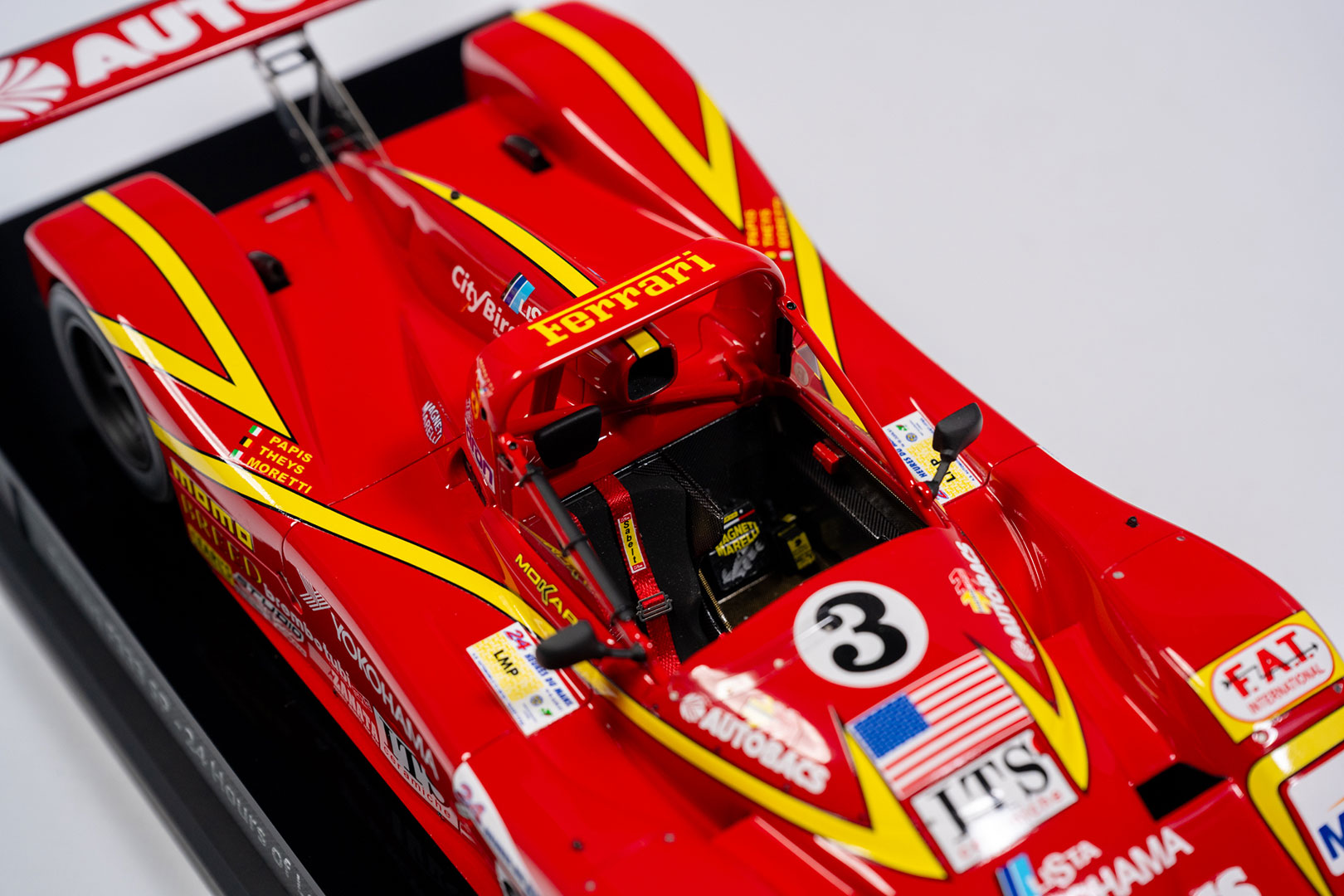 This model is based on the Moretti Racing Inc. LMP class racing car and was driven by Gianpiero Moretti, Max Papis and Didier Theys in the 24 Hours of Le Mans in 1997. This 1:18 scale model measures over 9 inches in length and was hand-built using the finest quality materials by a small team of expert craftsmen.