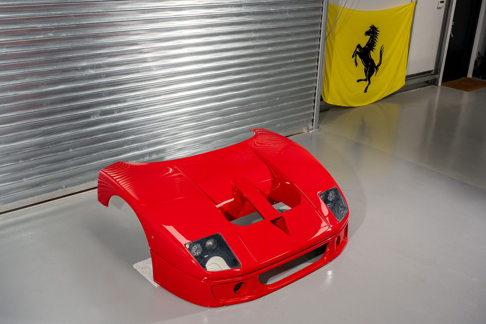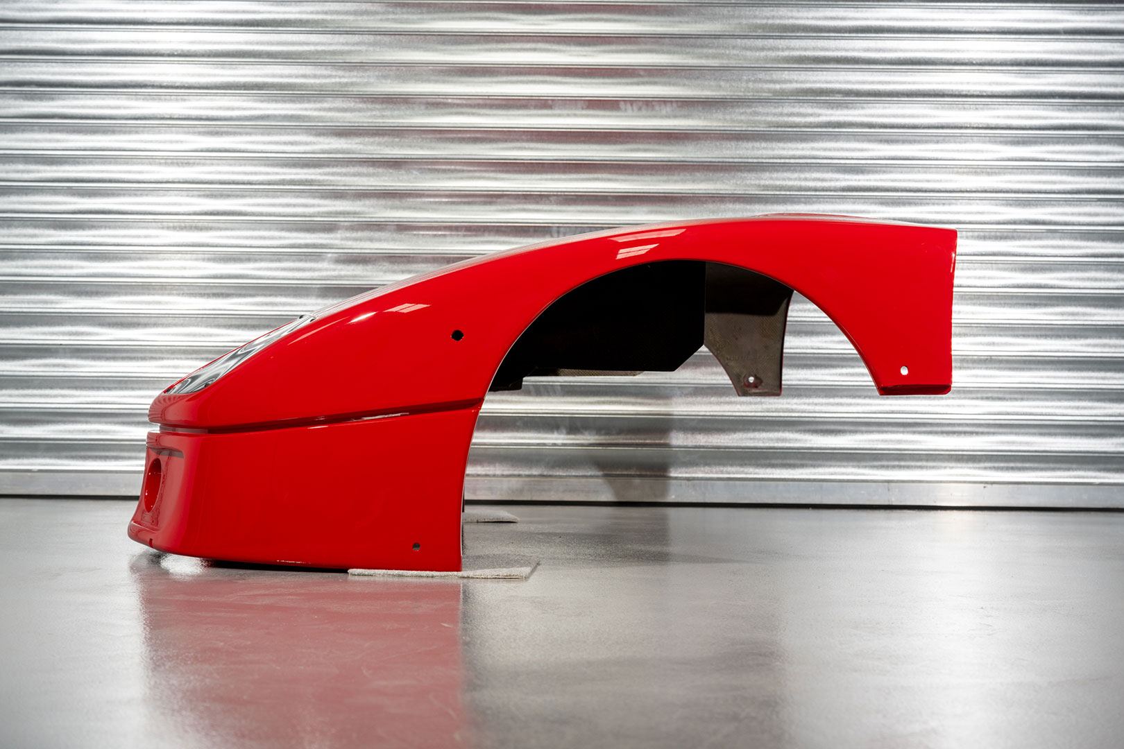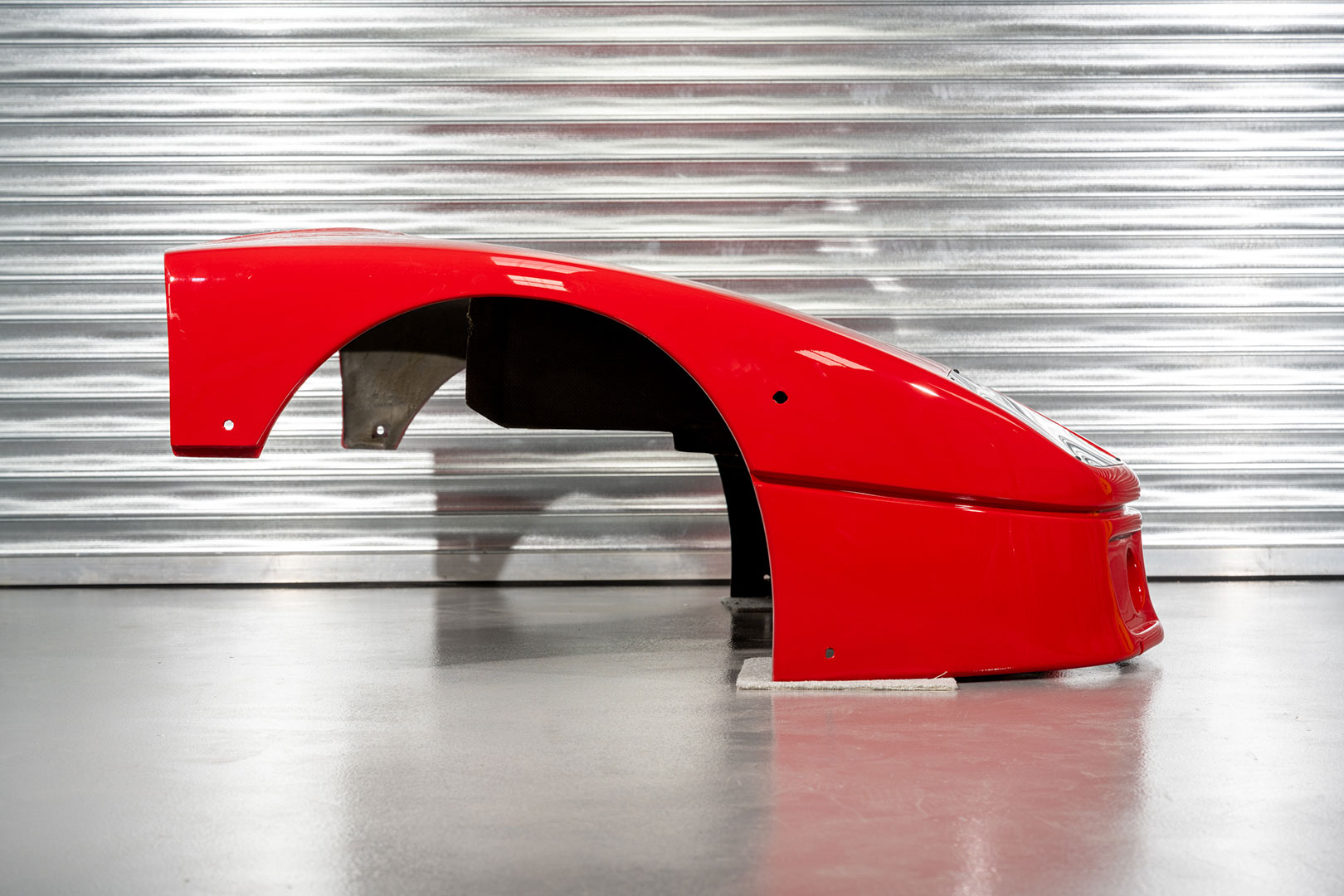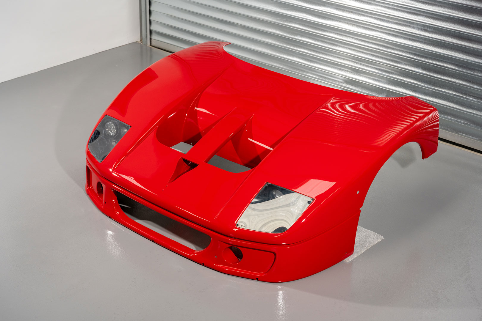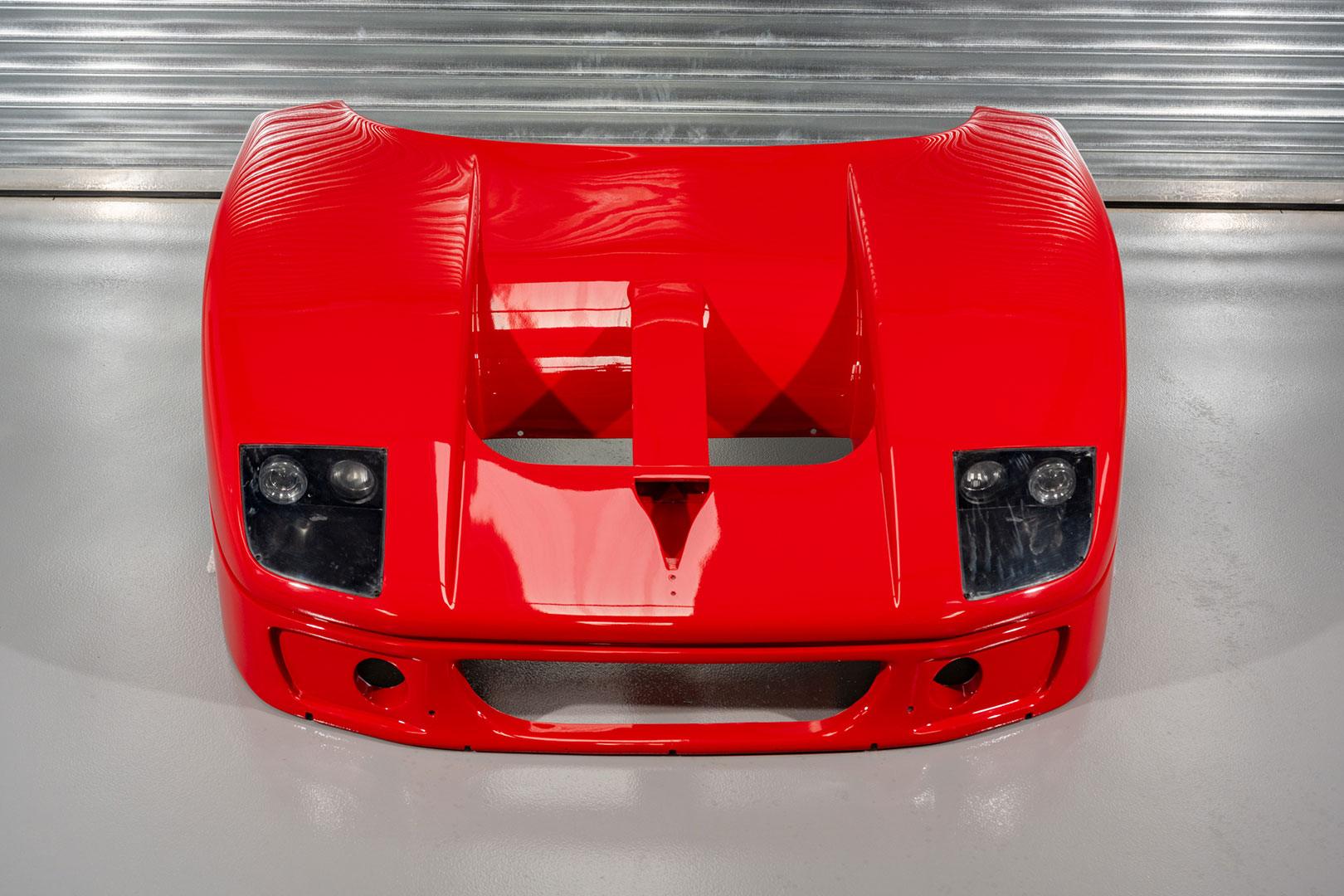 This Ferrari F40 LM-style front bodywork was modified from a European-specification unit that was used on a German race car under previous ownership. Constructed of carbon fibre and painted in Rosso Corsa, this front clip is presented in wonderful condition.