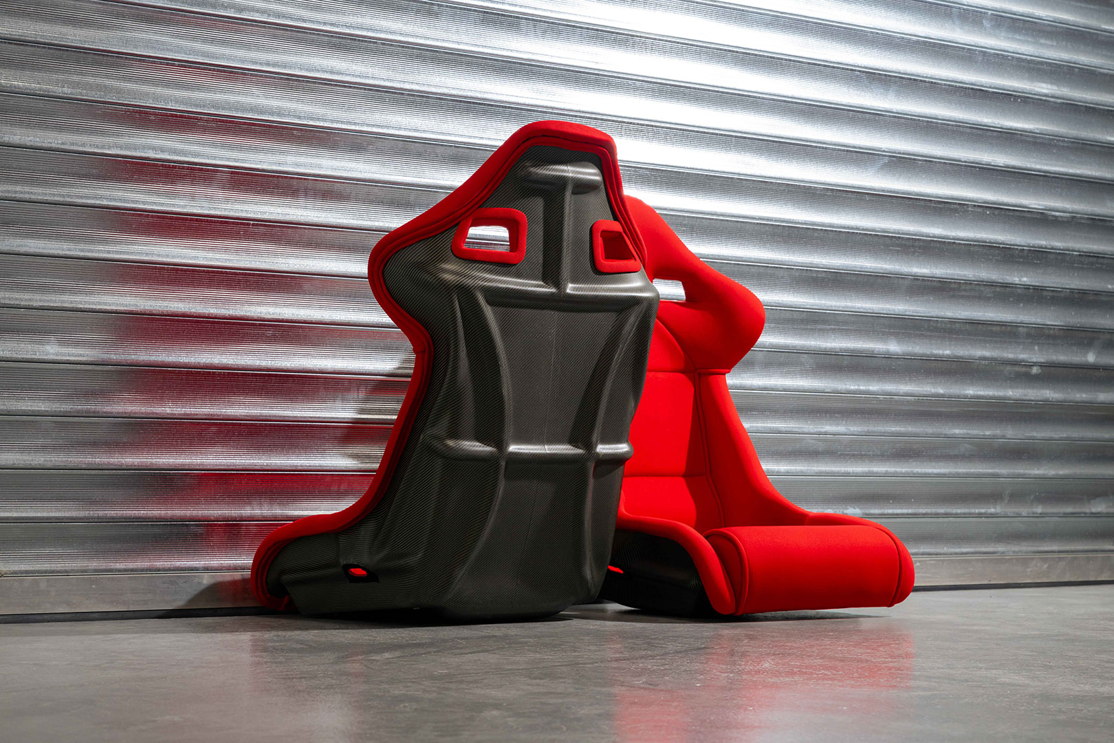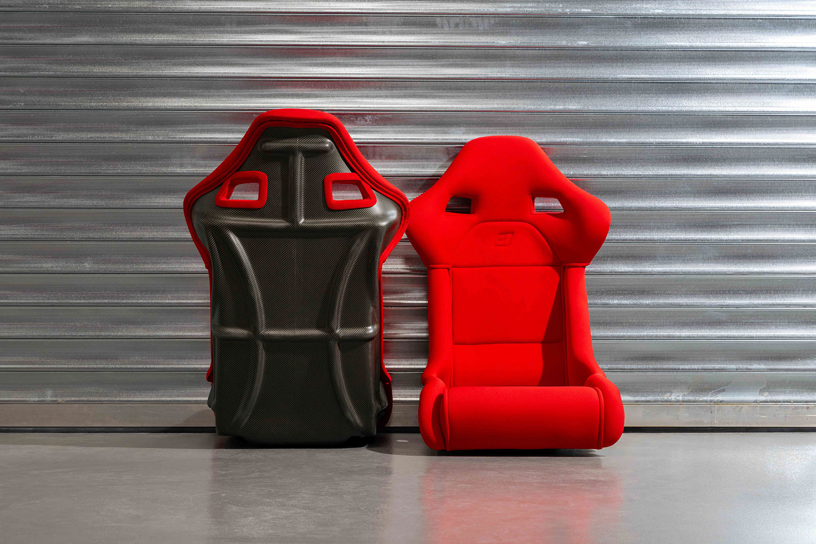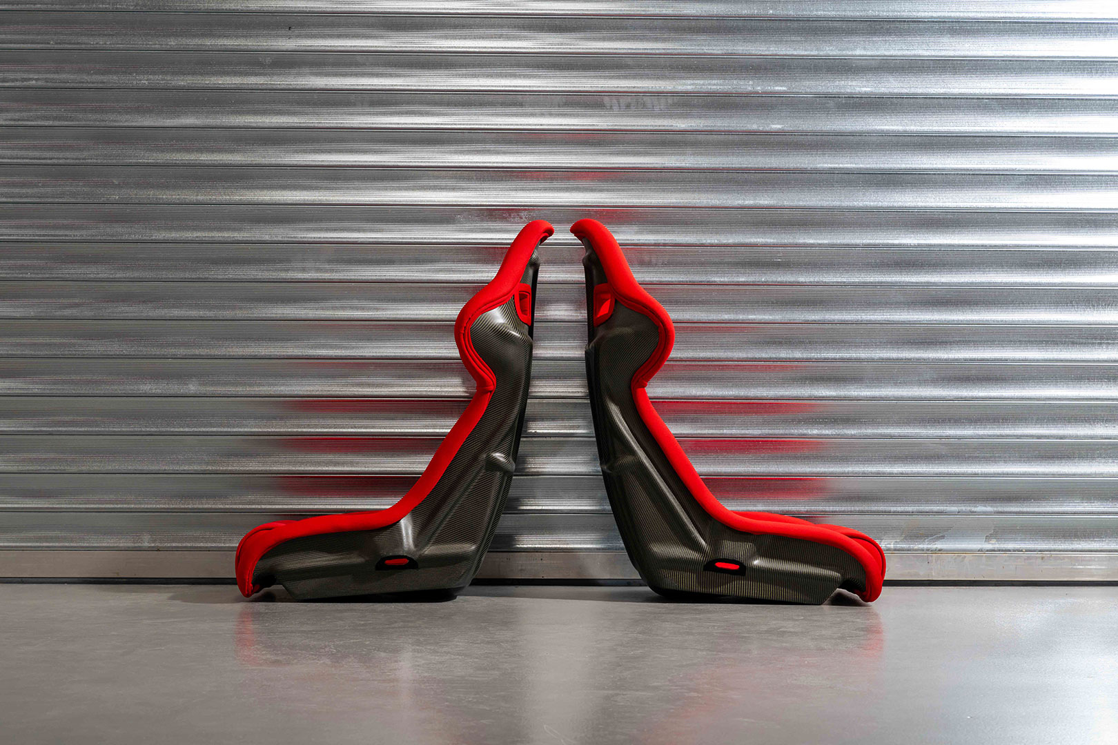 Ferrari F40 Euro Spec Seats. Manufactured from moulded carbon-kevlar composite and recently professionally reupholstered using the correct red Nomex fabric.