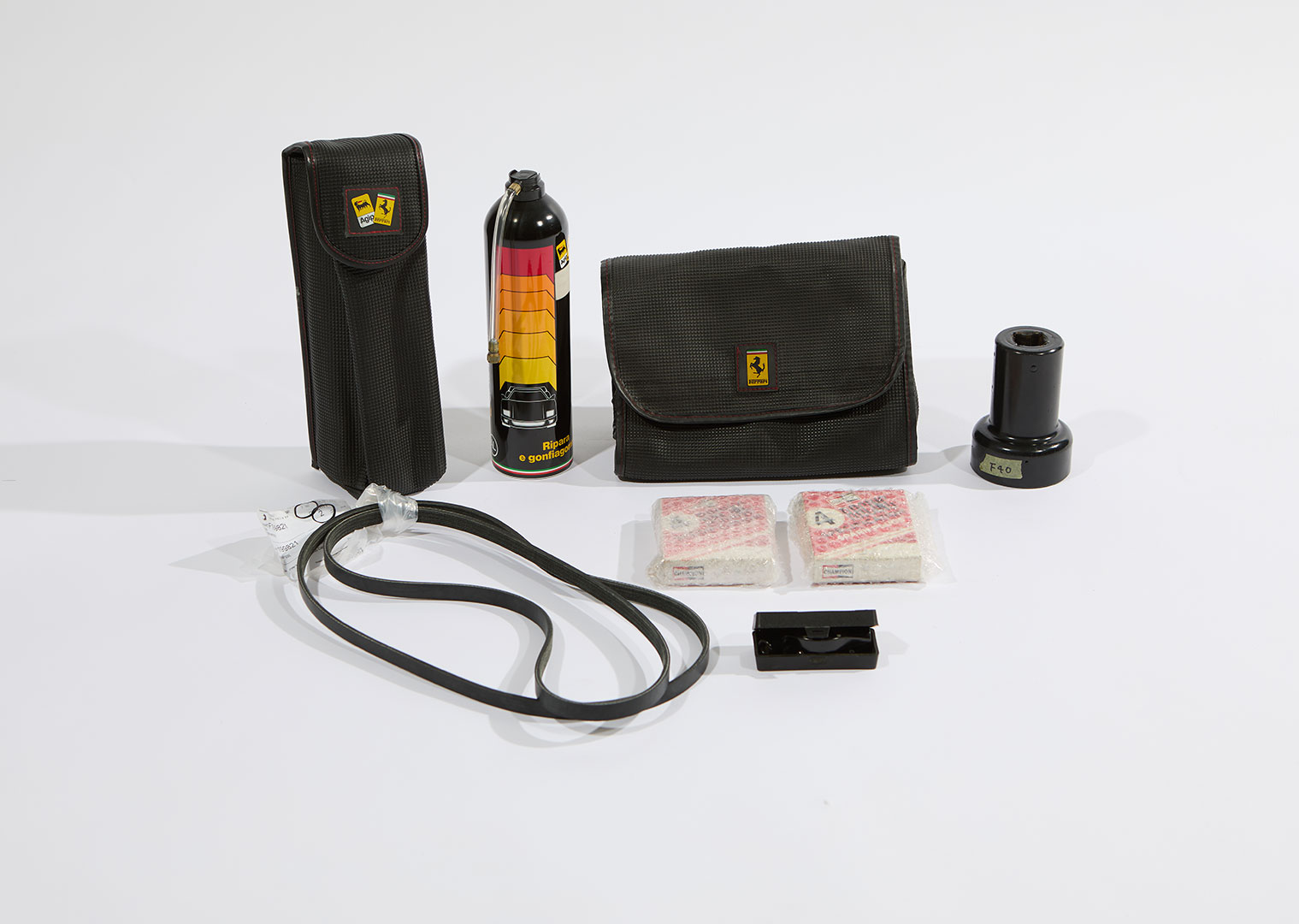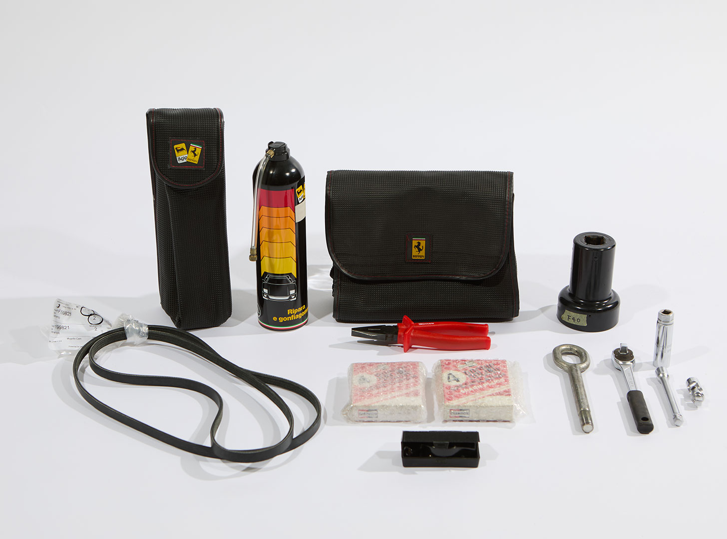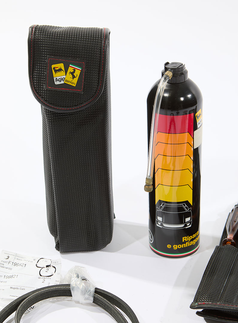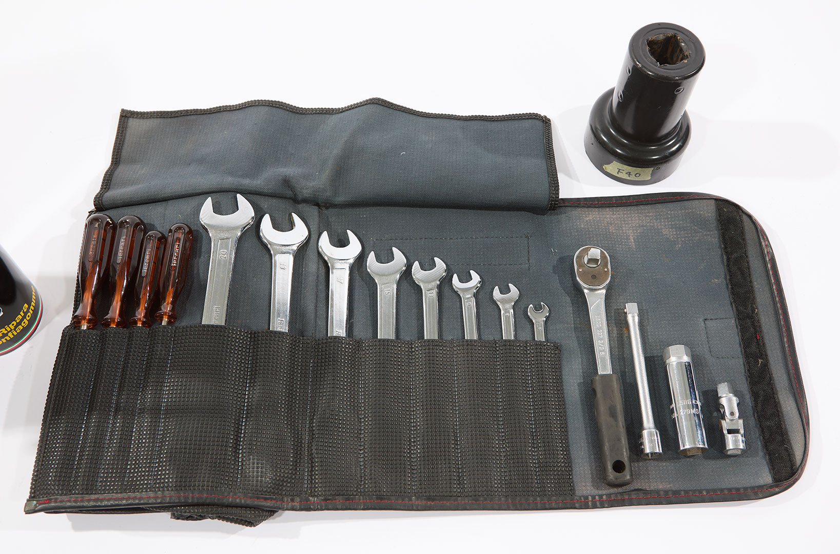 Comes complete with tool bag, 4 x screwdrivers, 8 x spanners, complete set of wrenches, pliers, wheel nut wrench, tow hook eye, light bulb and fuse container, Champion spark plug set, travel belts, Michelin Vigil Tyre Pressure Manometer, Agip tyre inflator & Bag.