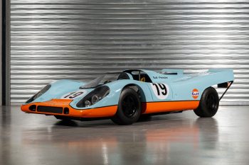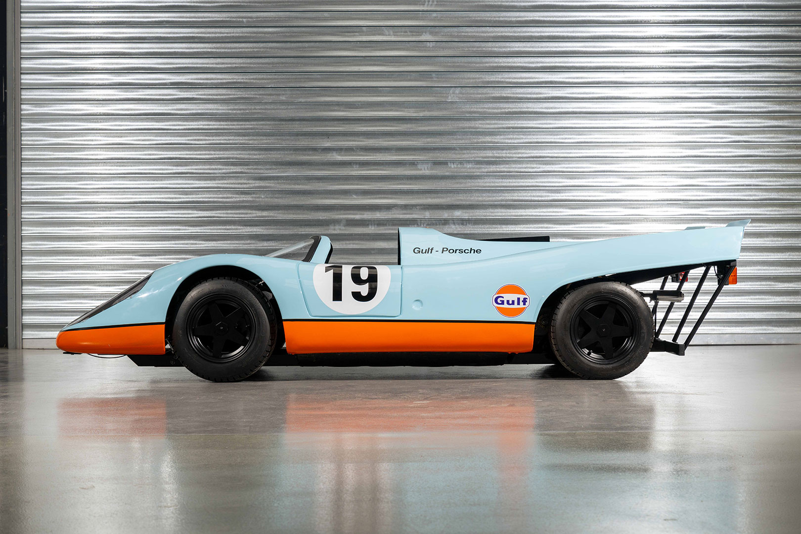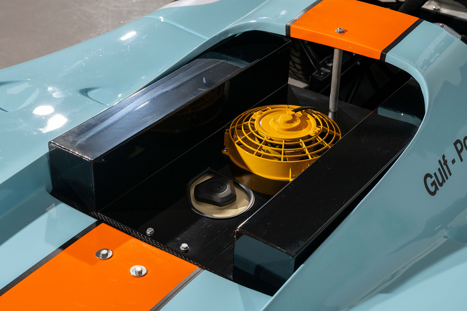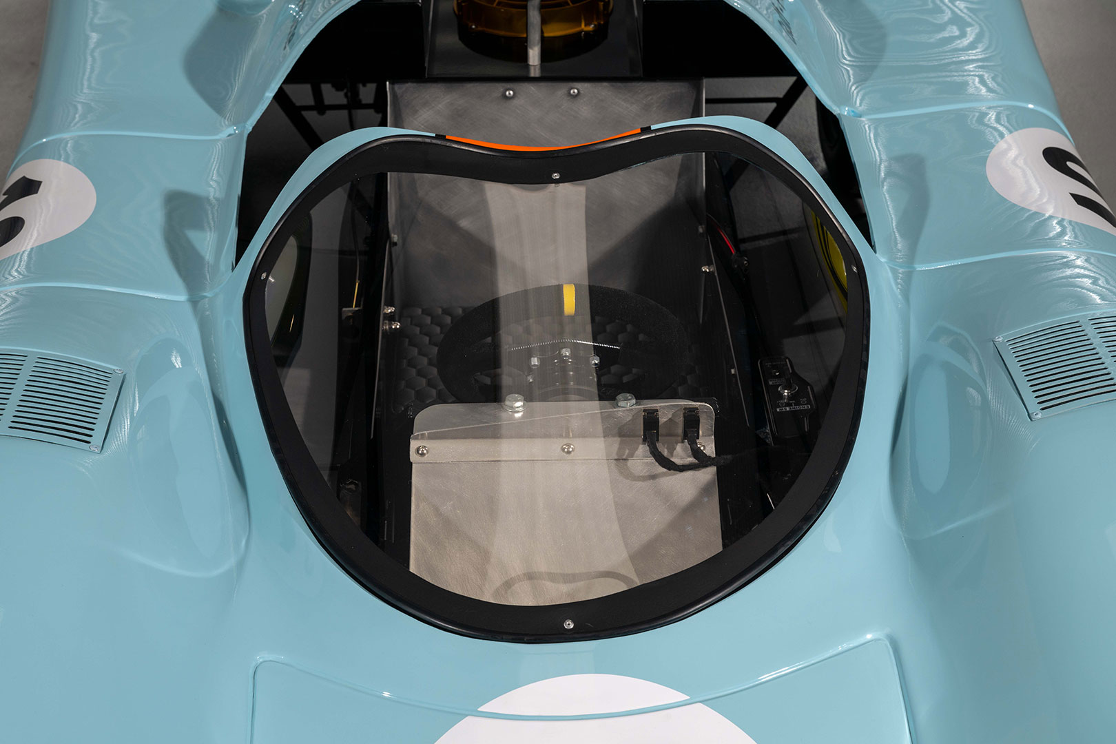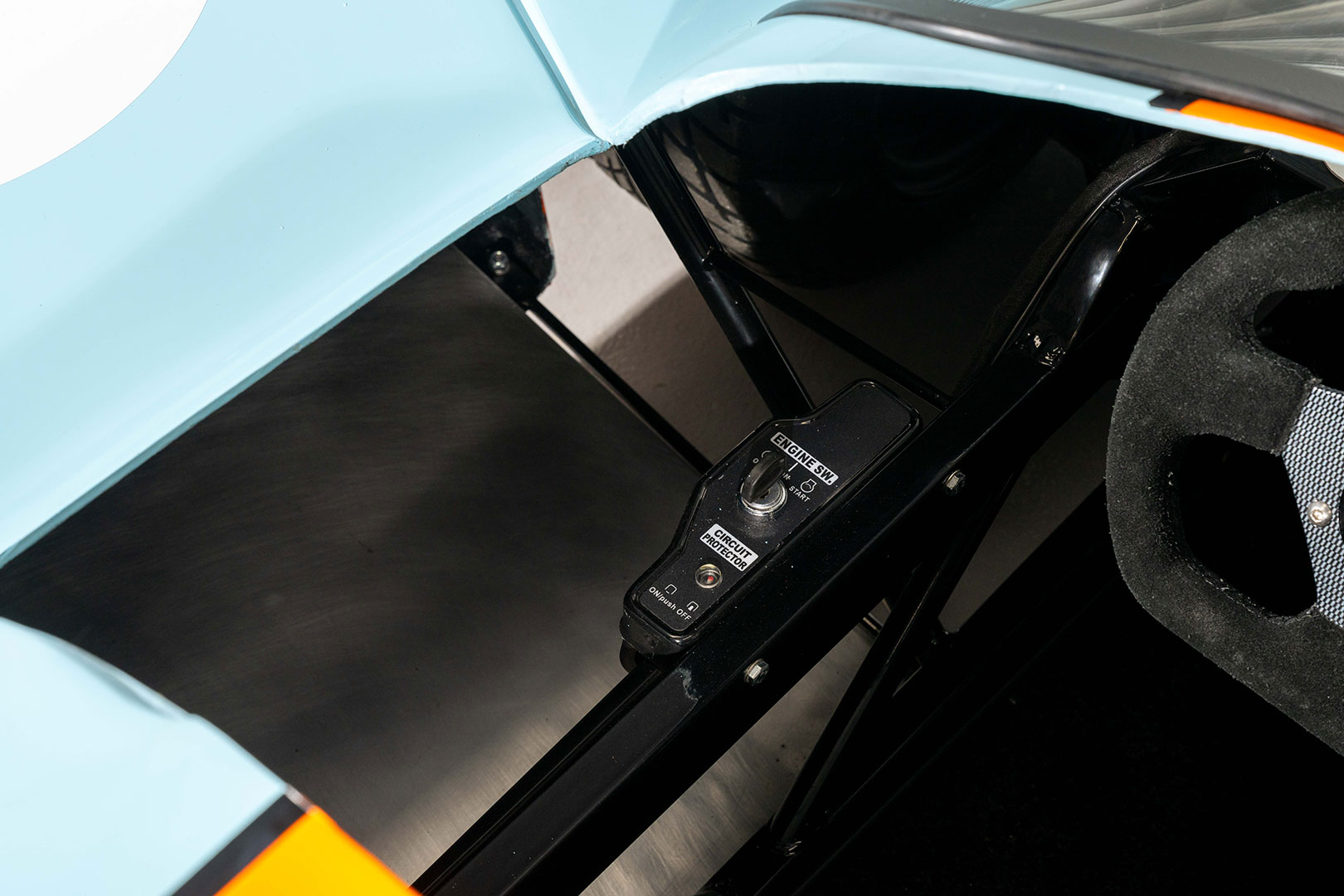 This Porsche 917K is built 72% to scale and is powered by a 9bhp 230cc petrol engine with a top speed of 28mph. Featuring Gulf livery and constructed from moulded fibreglass, it’s fitted with 10” wheels and features a gearbox, spring suspension, hydraulic brakes, quick-release steering wheel, headlights and a removable roof for easy access.