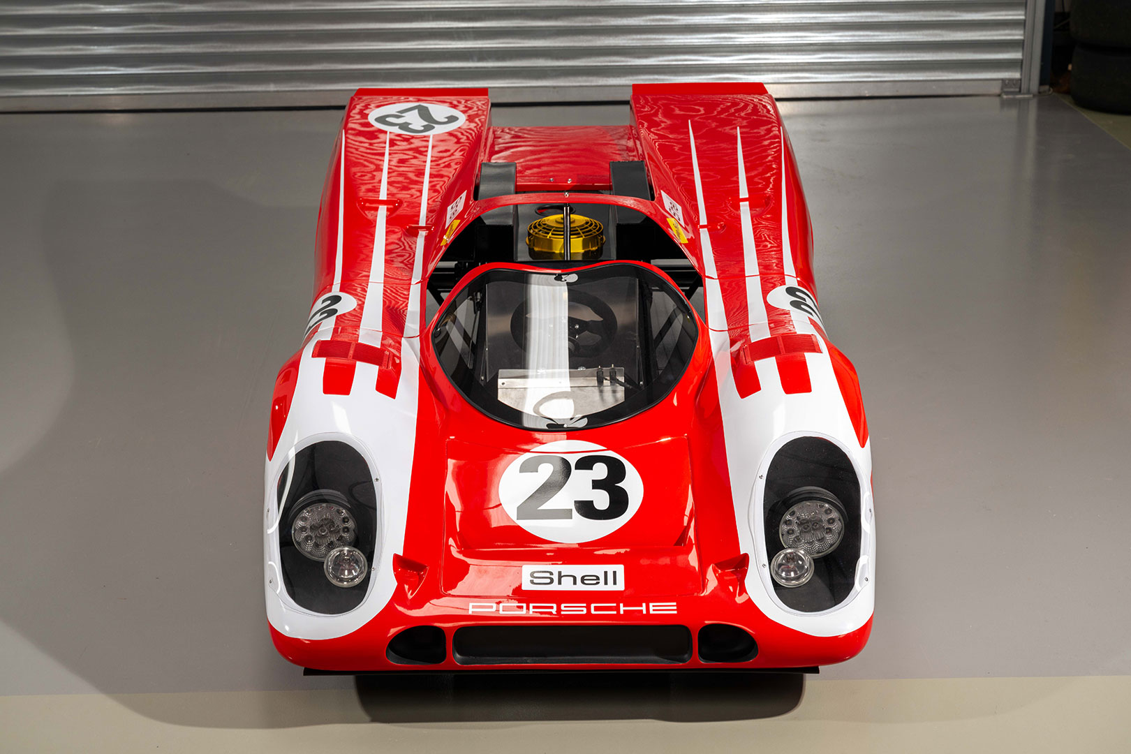 This Porsche 917K is built 72% to scale and is powered by a 9bhp 230cc petrol engine with a top speed of 28mph. Featuring Salzberg livery and constructed from moulded fibreglass, it’s fitted with 10” wheels and features a gearbox, spring suspension, hydraulic brakes, quick-release steering wheel, headlights and a removable roof for easy access.